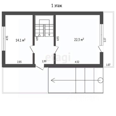 1 этаж: кухня, зал, санузел.