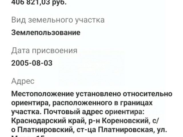 Арт. 126902465 Продается большой Земельный участок правильной формы с фасадом 24 метра в самом центре станице, рядом с рекой. Расположен в тихом и спокойном месте, но при этом в шаговой доступности от всех необходимых объектов инфраструктуры. Вы сможете наслаждаться тишиной, природой и рыбалкой. В реке много видов рыбы и раков. В шаговой доступности есть магазины, школы, детский сад, остановки общественного транспорта и многое другое. Коммуникации: все рядом - газ, свет, центральная вода. Получено официальное разрешение на строительство. Дополнительные вопросы задавайте по телефону.
