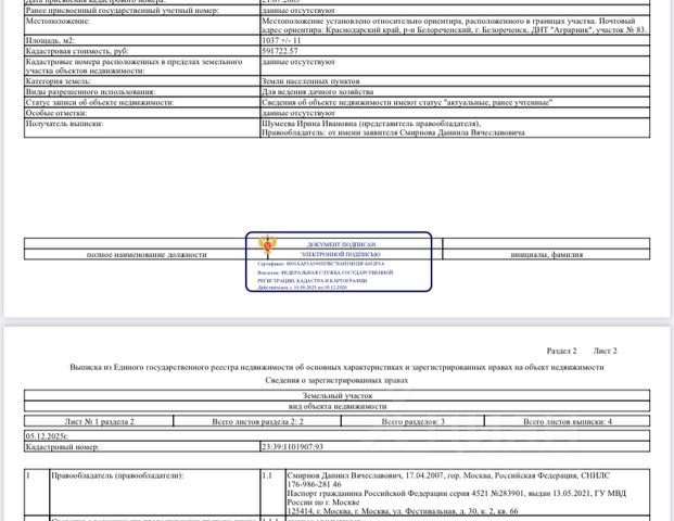 Адрес участка: Краснодарский край, Курганинский район, станица Воздвиженская, Крайняя улица, 12 - 25,5 соток. Кадастровый номер: 23:16:0102001:947 Большой, ровный участок правильной формы. Электричество, вода и газ по границе участка. Магазины, больница, школа, пункты выдач, аптеки, банк и проч. Инфраструктура - всё рядом. ВИД разрешенного использования для ведения личного подсобного хозяйства (приусадебный земельный участок). По сути тоже самое что ИЖС, но лучше (ниже кадастровая стоимость и меньше налог, а также можно вести свое хозяйство). При желании можно перевести в ИЖС, обратившись с заявлением в МФЦ или дистанционно через личный кабинет Росрееста. С одной стороны от участка - свободная земля, можно увеличить площадь земельного участка. Участок огорожен по фасаду старой сеткой и зеленой изгородью. Рядом великолепная река Лаба с красивейшими местами для отдыха. Собственник. Все документы готовы к продаже. Реальному покупателю будет скидка. Остались еще вопросы? Звоните или пишите с 8 до 20! На сообщения отвечу в течение дня.