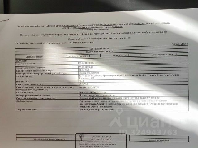 Кадастровый номер. 23:28:0101251:30, Срочно Без Торга.