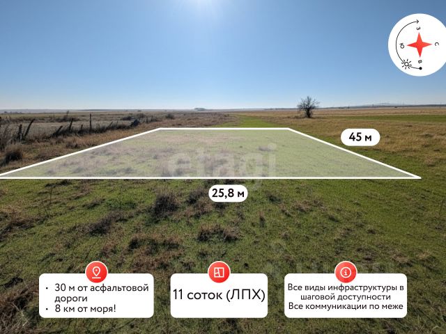 Продаётся участок ижс, в станице Ахтанизовская, на улице Батурина, асфальт, рядом живут люди, вся инфраструктура в пешей доступности, коммуникации центральные по меже. В продаже 3 участка, рядом. В объявлении указана цена одного участка. Если интересно пишите. Второй участок 6 соток цена 800.000 Третий участок почти 8 соток угловой, на асфальте, цена 1100.000 Арт. 120833257