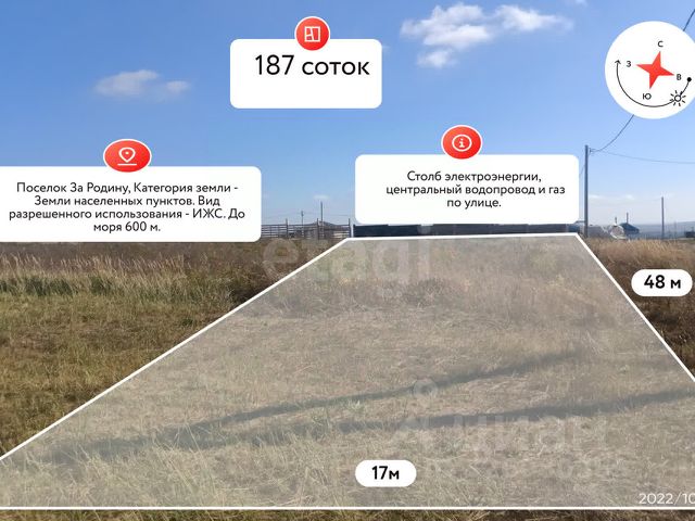 Документы готовы к сделке. Продается земельный участок ИЖС 6 соток по ул. Школьной пос. За Родину Темрюкского района. До ближайшего спуска к Азовскому морю всего 800 м. Все коммуникации проходят по меже, за исключением канализации. Посёлок За Родину — лакомый кусок для инвесторов: море рядом, есть коммуникации, туристический поток растёт. Подходит для строительства отелей, баз отдыха и частных домов под сдачу. Звоните пишите и не упустите возможность приобрести земельный участок по очень привлекательной цене.` Номер объекта: #1/538508/20104
