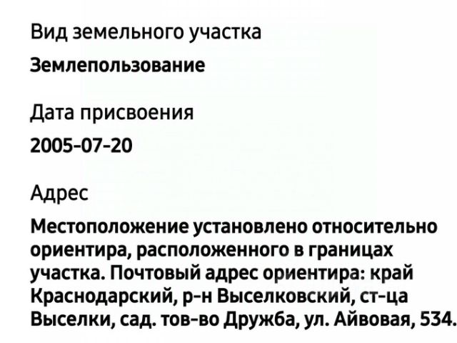 Земельный участок 6 соток с саманным садовым домом (с внешней стороны обложен кирпичом), о.п., примерно 36 кв.м., расположенным в хут. Москальчук. Дом на кадастре не стоит, состоит из двух комнат с печным отоплением. Огорожен сетчатым забором. Электричество подведено, есть скважина, газ проходит по соседней улице. Рядом есть соседи, которые приезжают на дачу. Напротив протекает река Челбас (3 минуты ходьбы). До города Тихорецк 10 км.