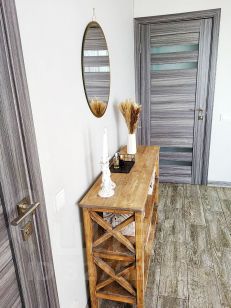 На первом этаже плитка/теплый пол, в спальне ламинат. На втором кварцвинил/ ИК теплый пол в спальнях, плитка в с/у. Добротная лестница из бука, не скрипит.
