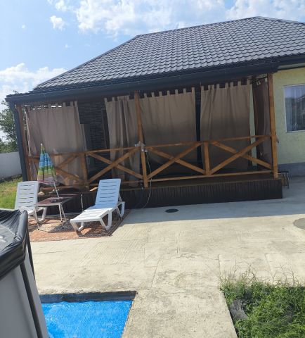 На участке есть каркасный домик - 30 кв. м, 1 комната, кухня и санузел. Сделан ремонт.