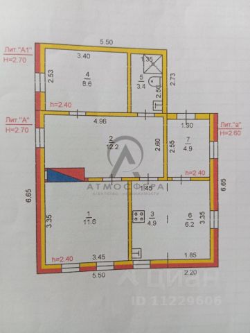 В доме расположены 2 изолированные комнаты (11,0 +5,1 кв.м.), гостиная 7,3 кв.м., и проходная 8,3 кв.м.