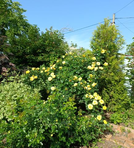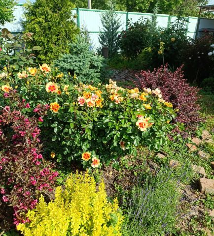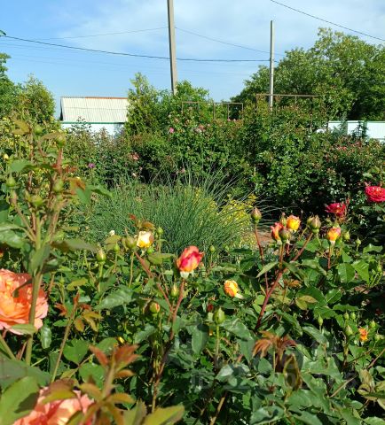 В саду плодоносящие деревья: яблони, груша, абрикос, черешня, вишня, персик, инжир, фундук, слива разных сортов, грецкий орех;