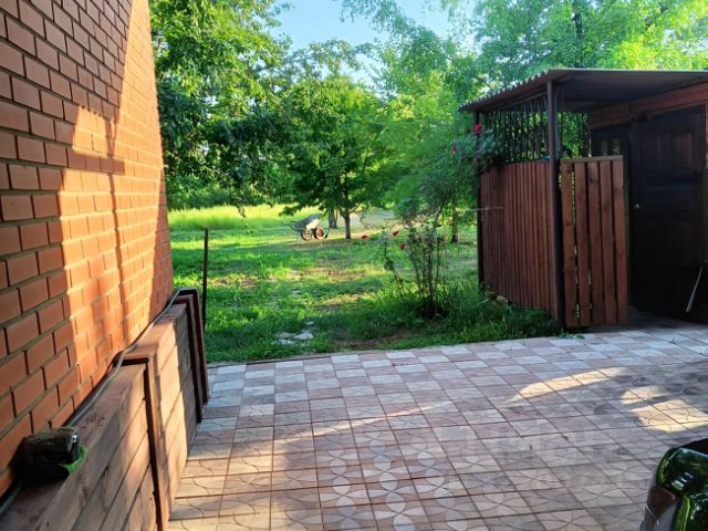 Саманный дом, кухня кирпич, двор забетонирован, навес, большой фруктовый сад