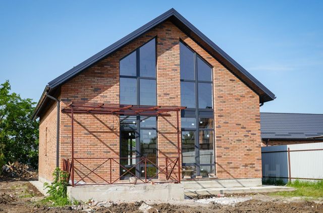 • Материал стен: газобетон, облицовка — керамический кирпич с вентилируемым фасадом.