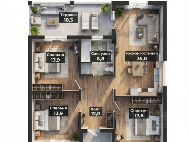 Дом общей площадью 232 кв.м. современной планировки: тамбур, холл, санузел, котельная-постирочная, изолированная комната 15,3 кв.м, кухня-столовая, гостиная — на первом этаже, монолитная лестница на второй этаж, монолитные плиты перекрытия.