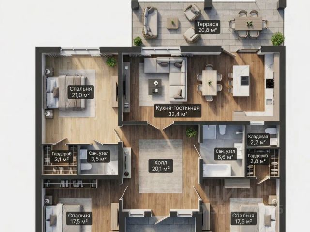 На втором этаже — три просторные изолированные спальни, одна из которых — мастер-спальня со свои санузлом и гардеробной, ванная комната, отдельная гардеробная, два балкона, монолитная! лестница на мансардный этаж.
