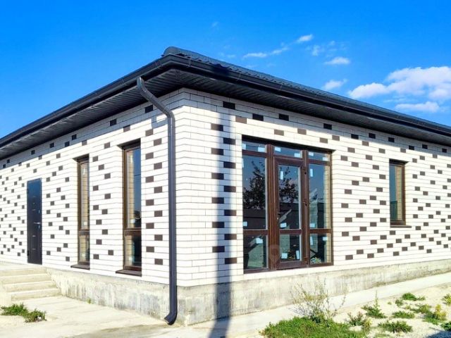Дом капитальный, перекрытие монолитное, состоит из бетона, снаружи отделан кирпичом, цоколь высокий.