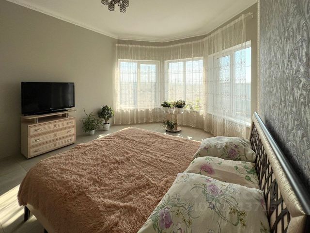 Качество материалов: В возведении стен используется 3 материала, что в совокупности даёт толщину стены 42 см  керамзитобетонный блок (20 см), утеплитель (10 см), кирпич (12 см). Фундамент: глубина 2 м (1,5м из них сделано замещение грунта песком, который пролит и утрамбован, затем бетон 50 см), ширина 40 см, плита с двойным армированием 20 см. Высота потолков 3,2 м, перекрытие деревянное 15 см Технониколь. Внутренняя отделка: предчистовая, стены оштукатурены, есть электро разводка (15 кВт), без стяжки, хорошего качества входная дверь, панорамные энергосберегающие тонированные окна пр-во Турция фирмы Элекс и фурнитурой Зегения. Крыша из металлочерепицы.