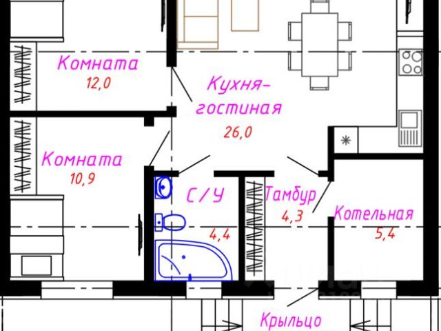 кадастровый номер дома 23:47:0104007:8696, расположен на земельном участке площадью 408 м2, ИЖС, кадастровый номер ЗУ 23:47:0104007:4912, размеры дома 10 м на 10,5 м, общая площадь дом с крыльцом и террасой 105 кв.м., общ. площадь дома без крыльца и террасы 80 кв.м., жилая площадь 25 кв.м.  В доме две жилые комнаты 10,3 кв.м. и 14,3 кв.м., кухня-гостиная 33 кв.м., сан. узел совмещенный 5 кв.м., котельная 4,6 кв.м., гардеробная 2 кв.м., коридор 11 кв.м.