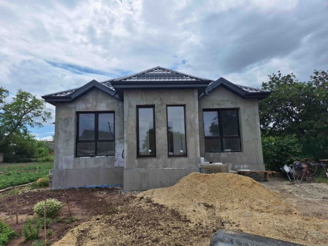 Дом гостевой в два уровня (56 м2): 7/8м, отопление автономное, кирпич бутовый, облицован итальянским полуторным кирпичом , крыша из финской металлочерепицы (дополнительное утепление, гидроизоляция, подшита доской), фундамент ленточный бетон металл, окна металл-пластик с ролетами. Планировка: столовая-кухня 4/4 м со встроенной индивидуальной мебелью, с техникой, котельная-прачечная 1/3м, стены и пол кафель, санузел 2/3м, стены и пол кафель, кладовая 1/3м пол линолеум, спальня 3/7м, потолки 3,1м гипсокартон, пол ламинат.