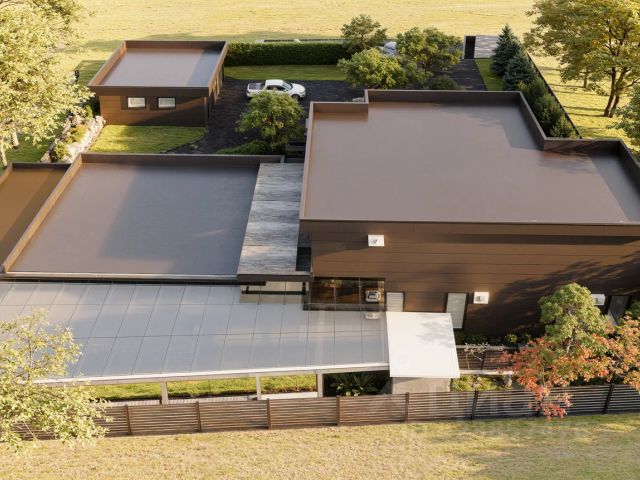 Металлический забор, ворота и калитка, видеонаблюдение, парковка во дворе.