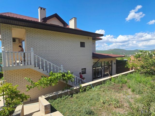 Дом очень тёплый и светлый. На втором этаже в зале для приёма гостей имеется бар и действующий камин. Отделка дома выполнена по индивидуальному дизайнерскому проекту, на стенах нанесена венецианская штукатурка ( имеет высокую износостойкость, легко подвергается мытью, проста в уходе и в тоже время шикарна выглядит ). В шаговой доступности имеются детский сад, средняя образовательная школа, остановка общественного пользования, сетевые магазины Магнит, Пятёрочка. Район полностью обжитой с максимально развитой инфраструктурой, дом имеет уникальное местоположение позволяющие выехать в центральную часть города, минуя все пробки и заторы. Данное домовладение строилось не на продажу! Дом построен и сдан в эксплуатацию в 2006 году.