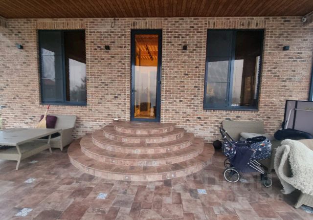 ДОМ : клинкерный кирпич про-ва Германии FALDHOUSE KLINKER ( марка 350). Цоколь и ступени керамогранит. Окна МПО с двойным стеклопакетом, цвет золотой дуб. В доме: 3 изолированые спальни, кабинет, зал, холл, 2 санузла, кухня, прихожая, гардеробная, котельная. В подкровельном пространстве бальярдная 100 м.кв. (санузел, отопление,сплитсистема,4 окна Велюкс). Потолки натяжные с двухярусными опусками из гипсокартона. Стены : керамогранит, декоративная штукатурка. Пол : керамогранит с двухкомпонентной затиркой Starlike (на основе эпоксидной смолы). В спальнях пол натуральная доска дуба. Межкомнатные двери Волховец, со шпоном натурального дерева.
