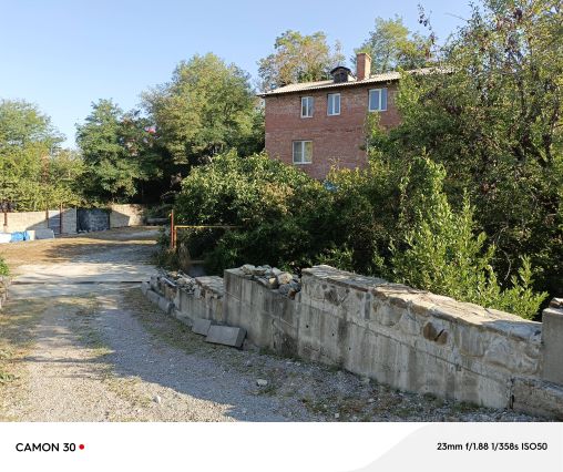Канализация - трехсекционный септик на 20 кубов, переливной, без необходимости выкачки, электричество -два счетчика по три фазы 15 квт 380 В, водоснабжение -холодная вода центральная; горячая вода - бойлеры; отопление - электричество (конвекторы и сплиты). Участок ровный 9,1 сотки, с хорошим подъездом (при съезде с городской дороги, дорога к участку в собственности), не затапливается никогда, рядом ручей. Плодоносящий сад ( яблоня, груша, хурма, вишня, черешня, инжир, виноград), территория для стоянки 8-10 машин. Достаточно места для постройки бани, гостевых домиков и т.д.