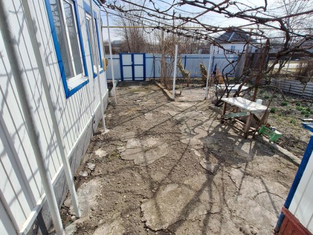 2 дом: Саманный, обшит сайдингом, внутри обшит вагонкой общая площадь 37,1 кв. м. Две комнаты, небольшая кухня, туалет, большая открытая терраса. Отапливается печкой. Газ рядом с домом можно завести.