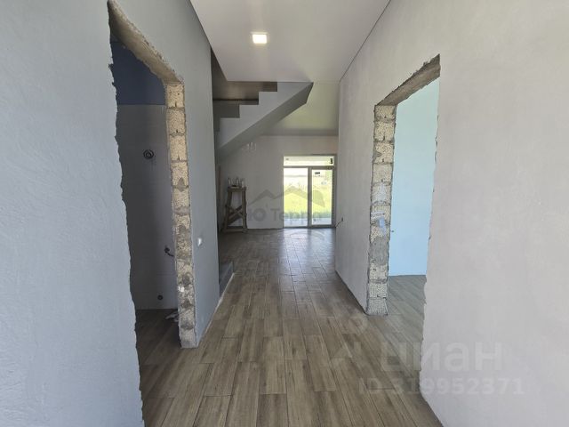 На 1м этаже дома находится гараж и вторая половина этажа без отделки, но можно, например, сделать сауну. 2-й этаж полностью жилой кухня и три жилые комнаты. К дому примыкает дополнительный фундамент, благодаря которому можно пристроить еще часть дома.