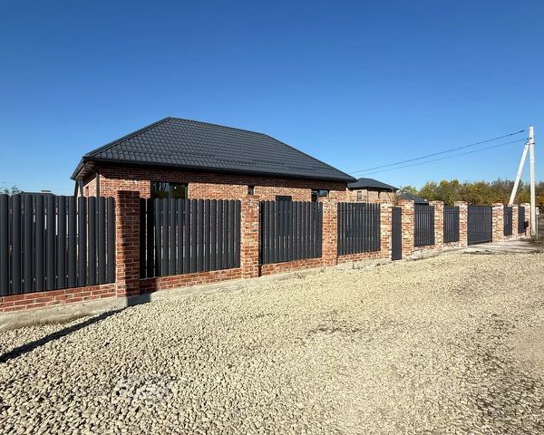 Фундамент ленточный, армированный. Желтый кирпич, высота потолка 3 метра, крыша 4-х скатная, металлочерепица. Входная дверь металлическая, электропроводка 32 точки. Водопровод: полипропиленовые трубы, опрессовка системы, разводка по дому от скважины. Канализация - разводка по дому с выводом к накопителю сточных вод (8 куб.м.). Отопление горячая вода (радиаторы), разводка по дому. Двор отсыпан щебнем, фасадный забор кирпичный, ограждение между соседями профлист, ворота автоматические роллетные коричневые, калитка коричневая.