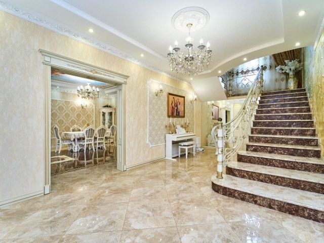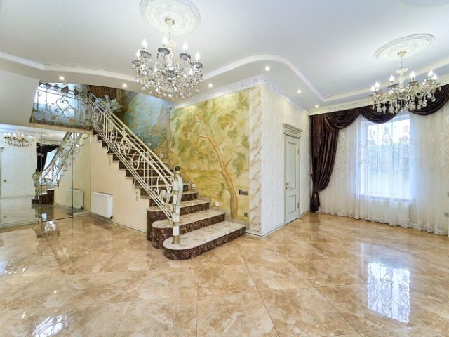 Отделка дома пол 1го этажа и все с/у из керамогранита, пол 2го этажа немецкий ламинат, на стенах немецкие обои, новая мебель, сантехника Grohe, Hansgrohe, Am.Pm.