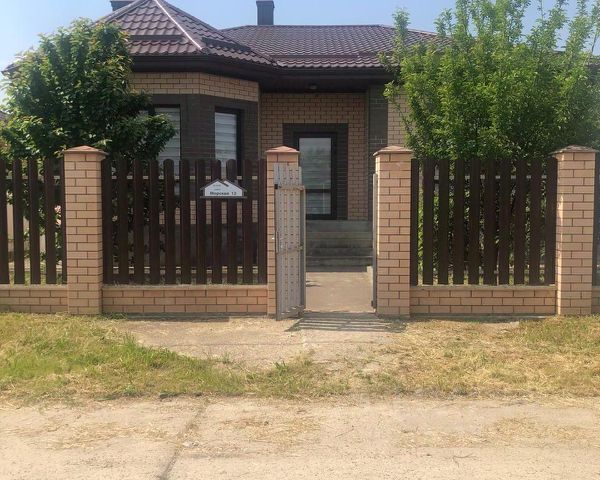 В ПРОДАЖЕ! Новый кирпичный двухэтажный коттедж со всеми коммуникациями в микрорайоне Немецкая деревня. Дом расположен на территории КП Зелёная долина-2. Отличное местоположение, улицы широкие, соседние дома — современные коттеджи. Коттедж возведен в современном архитектурном стиле Райта, полностью из кирпича, внутренние стены — забутовочный кирпич, наружные — керамический кирпич, большие металлопластиковые окна с внешней ламинацией, кровля — металлочерепица, входная группа с навесом, крытая терраса, балкон. Коттедж общей площадью 160 кв.м. современной планировки, комфортной для проживания семьи с детьми: крыльцо, прихожая, холл 14,5 кв.м, кухня-гостиная 30 кв.м с выходом на террасу 16,5 кв.м, изолированная комната 14,5 кв.м, санузел, монолитная лестница на второй этаж — на первом этаже. На втором этаже — холл, три изолированные спальни, хозяйская — 22 кв.м с выходом на балкон, ванная комната. Дом — в качественной предчистовой отделке. Коммуникации: газ, вода — скважина, канализация — септик, свет 15 кВт. Дом расположен на земельном участке 4 сотки, назначения ИЖС. На участке есть место для высадки сада, обустройства зоны барбекю. Участок огорожен по периметру забором, фасадный — кирпичные колонны, ворота откатные, калитка. Двор забетонирован, будет выложен плиткой. Дом готов. Покупка дома возможна с использованием средств льготной ипотеки. Продажа дома в коттеджном поселке в Краснодаре.