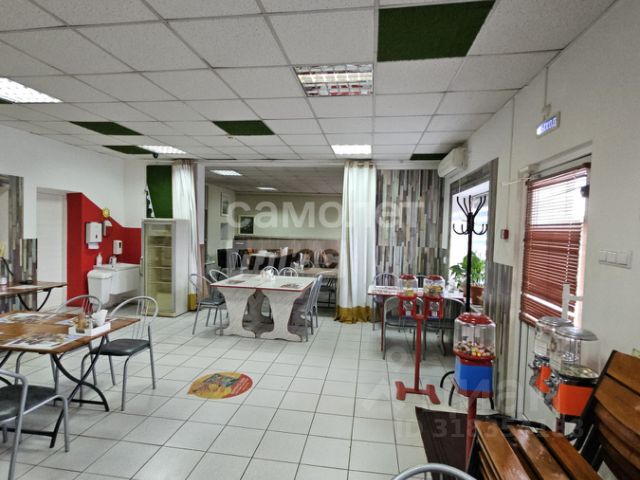 Основная часть строения задействовано под коммерцию: торговый зал-кафе (2 помещения), 3шт- мокрая точка, санузел, складское помещение, кухня, холодный цех, кабинет, холодильное помещение.
