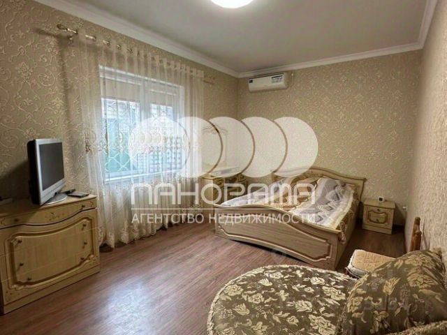 Объект 49394. Продаётся большой, уютный двухэтажный дом, с отдельными входами на каждый из этажей. Дом отделан короедом и ограждён надёжным кирпичным забором. 1 этаж (173 кв.м.): 2 отдельные спальни, гостиная, просторная кухня-столовая 40 кв.м., с встроенной кухней, большой коридор, ванная комната, котельная и офис с отдельным входом. 2 этаж (100 кв.м.): 2 отдельные комнаты, кухня-столовая и открытая веранда 20 кв.м. 2 этаж мансардный, но тёплый. Окна в крыше. В доме бетонные перекрытия между этажами! Толщина стен 50 см (блок + облицовочный кирпич). Во всех комнатах на обоих этажах кондиционеры, сделан современный ремонт. Наличие отдельных входов на этажи позволяет использовать часть дома для сдачи в аренду, не создавая неудобств проживающим в другой части хозяевам. Двор в плитке, навес для парковки авто, подвал, сарай, и сауна с бассейном. Коммуникации центральные: газ, вода, электричество 15 кВт. Индивидуальное отопление и горячая вода - газовый котел. Канализация - биосептик, с использованием бактерий. Намного экономичнее и удобнее обычного септика - безотходная технология, на выходе из системы техническая вода. Антенна Триколор. Дом 2009 г. Есть скважина. Торг уместен. В доме выделен ОФИС площадью 25 м2 Можно сдавать под пункт выдачи товаров и т.д. Придомовая территория благоустроена. Установлены ворота с электрическим доводчиком. Дом расположен в 5 минутах от центра города. Всё рядом: МФЦ, школа, садики, магазины, рынок, парк, остановки общественного транспорта, аптеки