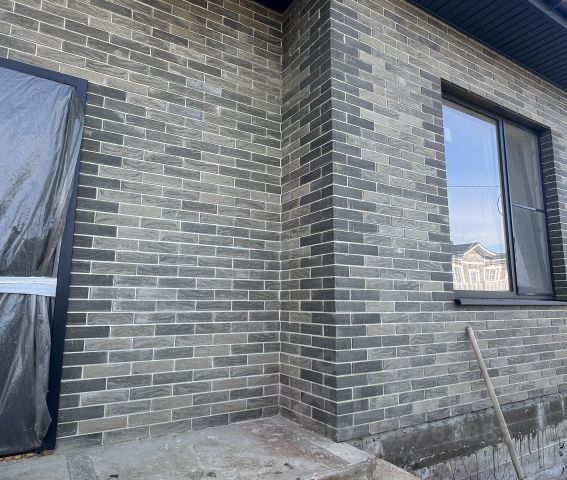 Дом построен по монолитно-блочной технологии, облицовка - кирпич.