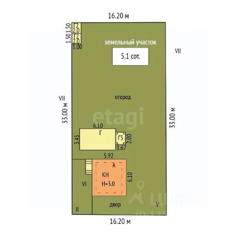 - площадь участка - 3,3 сотки;