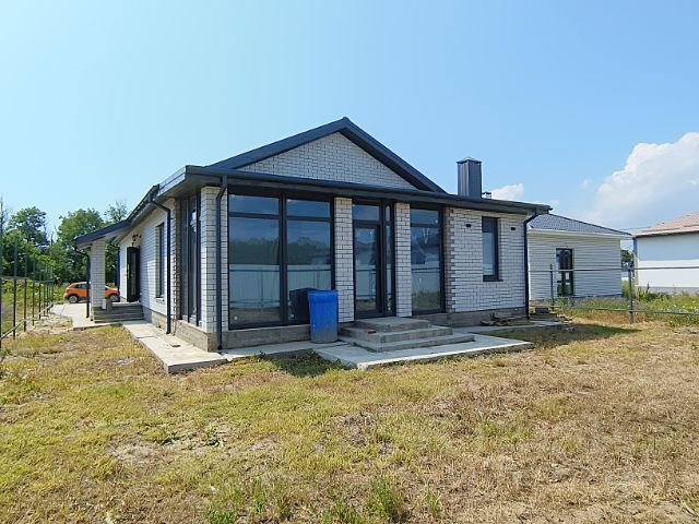 Продается дом 120 кв.м. на 6 сотках земли. - В доме выполнен качественный предчистовой ремонт. - Трехслойные окна с мульти напылением от ярких солнечных лучей. - Входная дверь с терморазрывом. - По периметру дома смонтировано освещение. - Выполнена стяжка пола, установлена система теплый пол во всех зонах, кроме спален. - Фасад кирпич, делали на заказ. - Участок 6 соток земли ИЖС, фасад 20 метров. - Огорожен забором. - Установлены ворота и калитка, к воротам подведен электропривод и домофон - Коммуникации: электричество 15 Квт, скважина, септик, газ центральный (подведен к дому). - Двухконтурный газовый котел в подарок. - Есть возможность подключиться к центральному водоснабжению. - Рядом с домом строится новая школа и детский сад. - Подходит под все виды господдержки (семейная, IT ипотека). Планировка - кухня-гостиная 34,4 кв.м. - 3 спальных комнат 10,9 кв.м, 12,9 кв.м. и 11,3 кв.м, - 2 санузла 3,3 кв.м. и 5,7 кв.м, - бойлерная 6,3 кв.м, - прихожая 7,5 кв.м, - терраса 9,5 кв.м. - коридор.