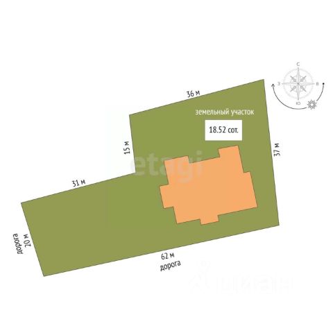 - просторный участок, есть плодоносящие деревья, на участке достаточно места для установки бани, беседки, детской площадки,