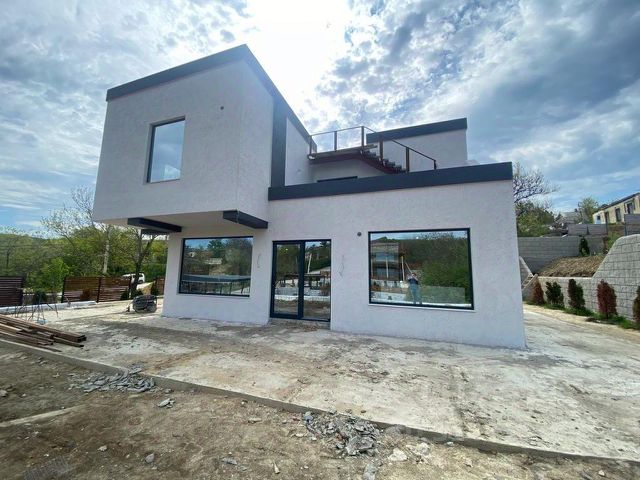 Дом построен: светлый солнцеотражающий керамический поризованный кирпич 200 плотности, сейсмо- монолитный каркас, эко-термоизоляция стен 20 см, толщина наружных стен 45 см, перекрытия монолитные толщиной 20 см, высота потолков 3 м, крыша солнцеотражающая металлочерепица.