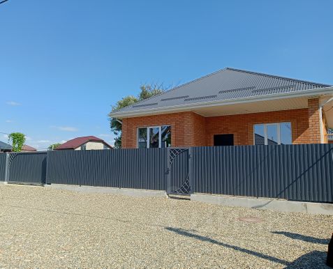 Дом 2024г. Постройки. Три спальни, гардеробная, санузел, прихожая, холл, кухня-гостиная с выходом на крытую террасу; отдельная котельная и дополнительный санузел на террасе. Двор забетонирован, полностью огорожен. В пешей доступности: школа, детский сад, магазины, ЦРБ. АН "Респект Недвижимость" г.Белореченск ул.Ленина 20А