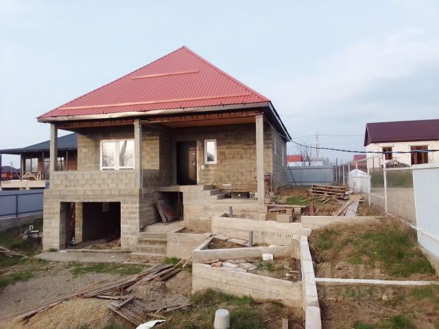 Продается дом _104,8_ кв.м., на участке __5,9__ соток. Пол забетонирован, стены оштукатурены, пластиковые окна. В доме электричество, на участке скважина, вывод канализации на септик, газ по границе участка. Жилой этаж один, в цокольном этаже гараж __22,1__ кв.м. Две комнаты (одна из них с выходом на балкон), большая кухня-гостиная с дверью на улицу, совместный санузел. Балкон с видом на лес, за ним река Белая. Дом оформлен в собственность. Общая площадь по документам _139,4_ кв.м. Жилая площадь _40.6_ кв.м. Возможен обмен с доплатой на Ваш участок, или дом/квартиру. Рассмотрю варианты. Скидка участникам СВО. Дом на улице Степная в городе Белореченск.