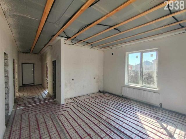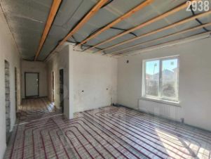 В доме выполнен ремонт: санузел отделан керамической плиткой, установлена сантехника, межкомнатные двери, стены — обои, ламинат и керамическая плитка — на полу, теплые полы, натяжные потолки, отделка лестницы на второй этаж.
