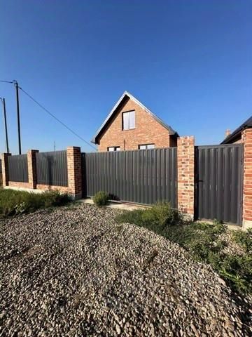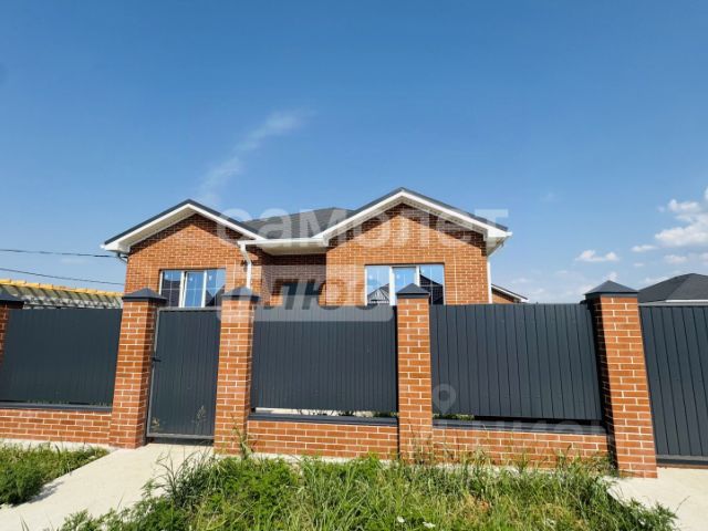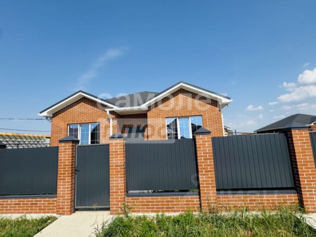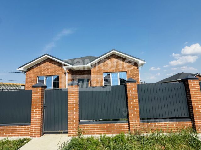Дом возведен полностью из кирпича, высокий цоколь, металлопастиковые окна, кровля — металлочерепица, большая застекленная лоджия-веранда.