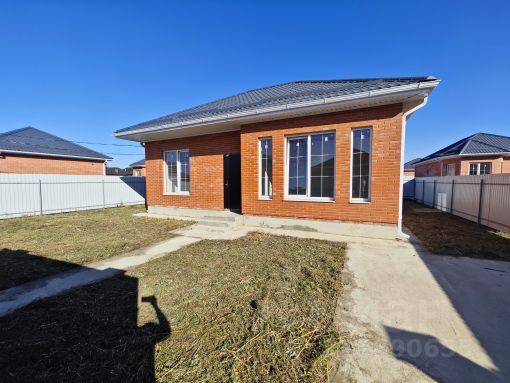 Дом возведен полностью из кирпича, высокий цоколь, металлопастиковые окна, кровля — металлочерепица, большая застекленная лоджия-веранда.