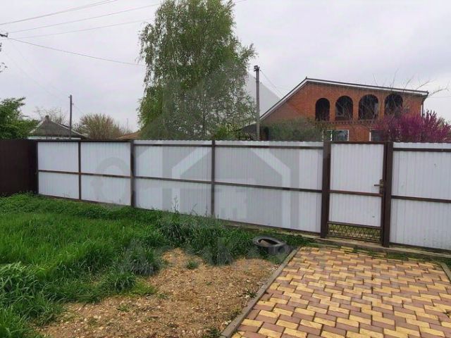 Участок огорожен металлопрофилем 2 м.высотой, двор вымощен тротуарной плиткой,имеется большой высокий навес для автомобилей( подойдёт даже для грузовиков).Ворота с автоматикой.