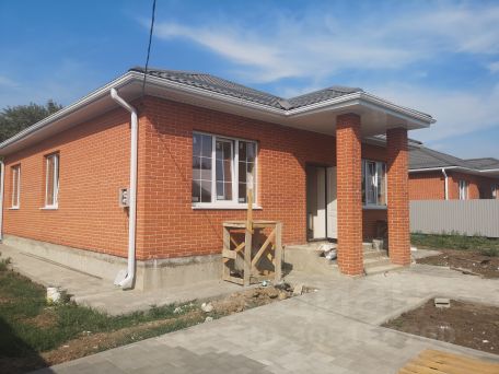 Новый кирпичный дом с газом, пл. 100 кв.м., 2 спальни, просторная кухня-гостиная с панорамными окнами и выходом на террасу, высокие потолки, тёплые полы, большой навес, земельный участок 4 сотки правильной формы полностью огорожен. Ведутся работы по благоустройству двора, укладка плитки во дворе и вокруг дома. В шаговой доступности магазины, 6-я школа, стадион. Цена: 7 млн. 300 тыс. рублей, возможна продажа под сельскую ипотеку 3%, под семейную ипотеку от 4 % Окажем помощь в открытии и оформлении ипотеки