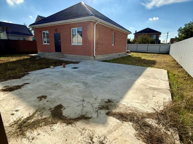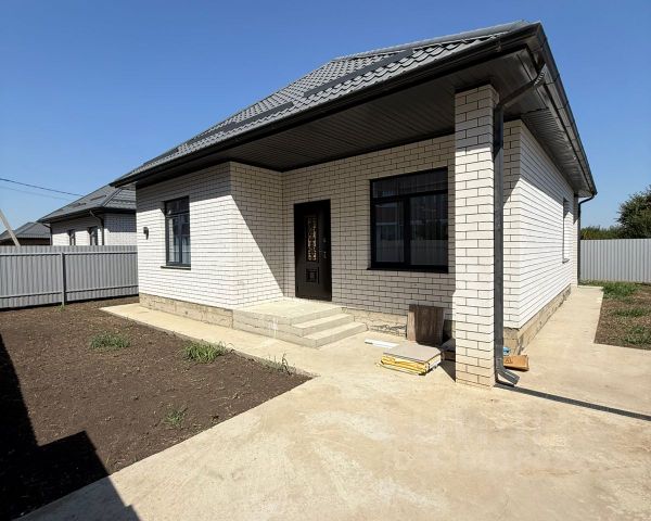 В ПРОДАЖЕ! Новый коттедж со всеми коммуникациями в поселке Южном. Дом расположен в отличной локации (старый Южный) в окружении всей необходимой социальной и коммерческой инфраструктуры. Одноэтажный коттедж возведен полностью из кирпича на ленточном фундаменте, металлопластиковые окна с внешней ламинацией, кровля — металлочерепица, крытая терраса. Коттедж общей площадью 120 кв.м современной планировки: крытое крыльцо, холл, совмещенный санузел, три изолированные комнаты, кухня-гостиная 28 кв.м с выходом на террасу. Коммуникации: газ, свет 15 кВт (три фазы), вода — скважина 32 м , канализация — септик 9 куб.м. Дом — в предчистовой отделке. Дом расположен на земельном участке 4 сотки, назначения ИЖС, участок огорожен по периметру забором, фасад — с кирпичными колоннами, откатные ворота, калитка. Дом готов. Ипотека обычная.