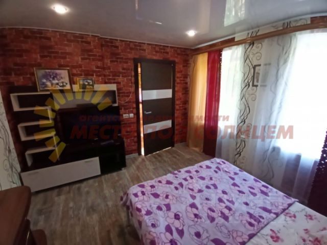 Состоит из трех жилых комнат, кухни-коридора, совмещенного санузла (душевая кабина, раковина, стиральная машина).