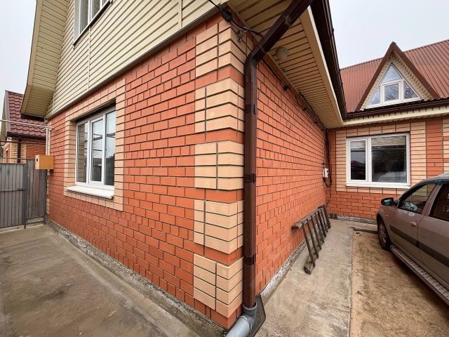Дом 150 кв м. Имеется навес на две машины, сарай, тусовочная зона (под крышей, проведен свет), вольер для собаки, уличный душ (электрический водонагреватель) и туалет.