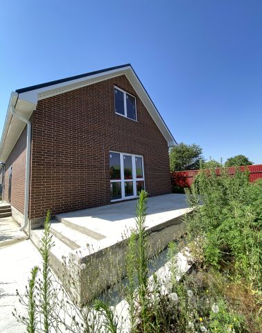 Продам новый кирпичный коттедж в микрорайоне Ейское шоссе, поселок Березовый, Прикубанский округ Краснодара. Отличное местоположение, дом расположен на территории СНТ "Прогресс", хорошие подъездные пути, от асфальта 50 мю На территории — обустроенные детская и спортивная площадки, продуктовые магазины. Школьный автобус возит детей в новую школу в Молодежном микрорайоне и школу 50, поликлиники — в Молодежном. СНТ Прогресс газифицировано, широкие улицы. В Прогрессе — обустроенным парк для отдыха. Одноэтажный коттедж возведен на свайно-ростверковом фундаменте, внутренние стены — газоблок, наружные стены — облицовочный керамический кирпич, большие окна (французское остекление) с внешней ламинацией, кровля — металлочерепица, входные двери, крытая терраса. Дом общей площадью 110 кв.м + крытая терраса современной планировки: холл, три изолированные спальни, кухня-гостиная 30 кв.м с выходом на террасу, санузел совмещен 6 кв.м, котельная. Коммуникации: свет 10 кВт, канализация — септик 9 м3, вода — скважина 30 м, газ — по меже, подключение самостоятельное. В доме выполнена предчистовая отделка: стяжка пола, теплый пол, штукатурка стен под покраску, разводка электрики, отопительного оборудования, двухконтурный газовый котел, радиаторы отопления. Дом расположен на земельном участке 5 соток, участок огорожен по периметру забором, откатные ворота, калитка, по периметру — бетонная отмостка, площадка под автомобиль. Дом готов. Льготная ипотека.