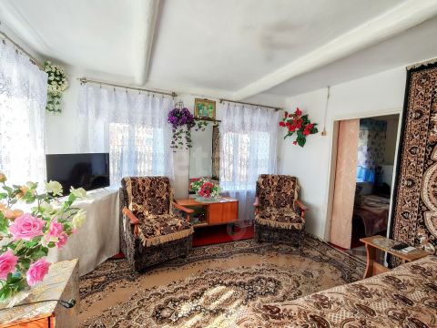 Состоит из трех жилых комнат смежно-раздельного расположения, кухни, с/у и коридора. Стены окрашены колером, потолки побелены, в одной из комнат - потолочная плитка, полы застелены листами ДВП, в одной из комнат - ламинат. На кухне стены окрашены краской, рабочая зона облицована кафелем, потолок побелен, пол застелен линолеумом. С/у совмещенный, частично, облицован кафелем. Частично, установлены металлопластиковые окна. Счетчики на все коммуникации. Сплит-система. Спутниковое ТВ. Автоматический газовый водонагреватель. Отопление - напольный газовый котел. Входная дверь - деревянная.