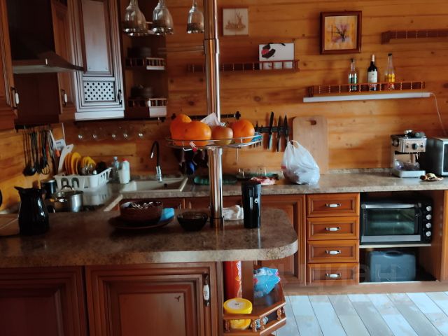 Кухня расположена в виде отдельного здания. В процессе проживания выяснилось, что так на самом деле удобнее, ведь в доме нет лишних запахов, а летом в нём всегда свежо и прохладно даже без кондиционера!
