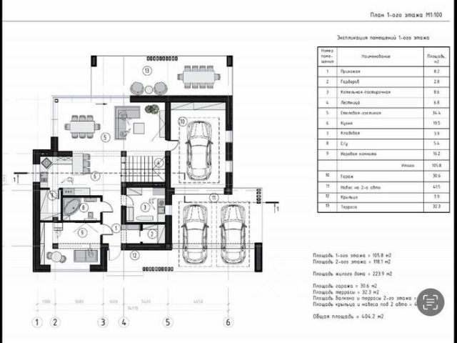 Первый этаж: холл, кухня-столовая, гостиная с камином, раздельный санузел.