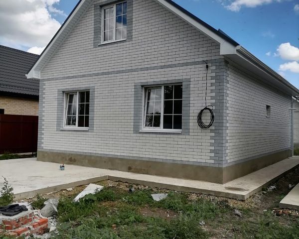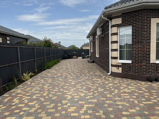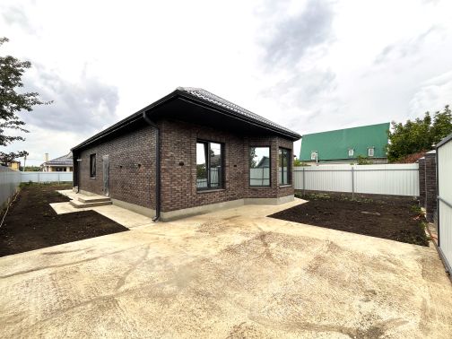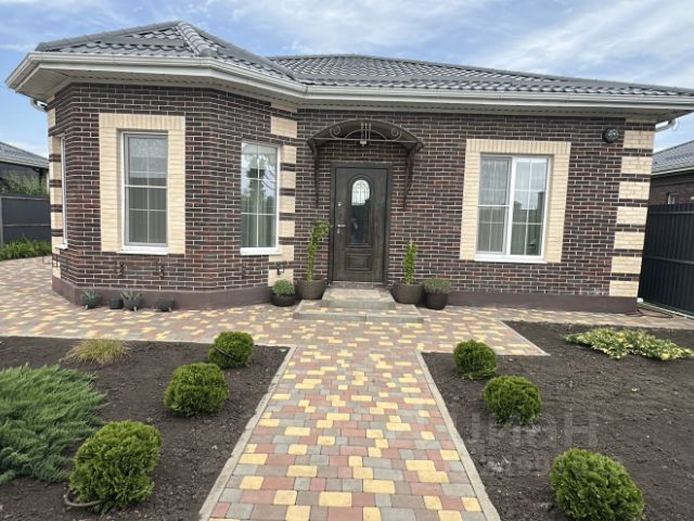 Продам новый кирпичный коттедж в микрорайоне Ейское шоссе, поселок Березовый, Прикубанский округ Краснодара. Отличное местоположение, дом расположен на территории СНТ "Прогресс", хорошие подъездные пути, от асфальта 50 мю На территории — обустроенные детская и спортивная площадки, продуктовые магазины. Школьный автобус возит детей в новую школу в Молодежном микрорайоне и школу 50, поликлиники — в Молодежном. СНТ Прогресс газифицировано, широкие улицы. В Прогрессе — обустроенным парк для отдыха. Одноэтажный коттедж возведен на свайно-ростверковом фундаменте, внутренние стены — газоблок, наружные стены — облицовочный керамический кирпич, большие окна (французское остекление) с внешней ламинацией, кровля — металлочерепица, входные двери, крытая терраса. Дом общей площадью 110 кв.м + крытая терраса современной планировки: холл, три изолированные спальни, кухня-гостиная 30 кв.м с выходом на террасу, санузел совмещен 6 кв.м, котельная. Коммуникации: свет 10 кВт, канализация — септик 9 м3, вода — скважина 30 м, газ — по меже, подключение самостоятельное. В доме выполнена предчистовая отделка: стяжка пола, теплый пол, штукатурка стен под покраску, разводка электрики, отопительного оборудования, двухконтурный газовый котел, радиаторы отопления. Дом расположен на земельном участке 5 соток, участок огорожен по периметру забором, откатные ворота, калитка, по периметру — бетонная отмостка, площадка под автомобиль. Дом готов. Льготная ипотека.
